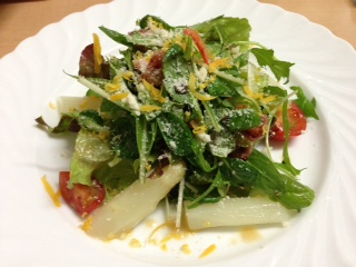 この写真は、【ホワイトアスパラとミモレットを使ったサラダ】